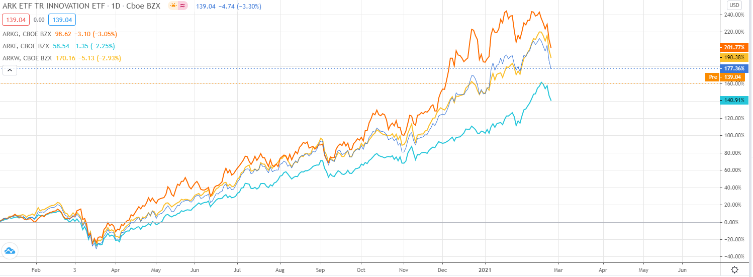 Сейчас динамика всех ETF-ов от ARK выглядит как разворачивающийся пузырь: