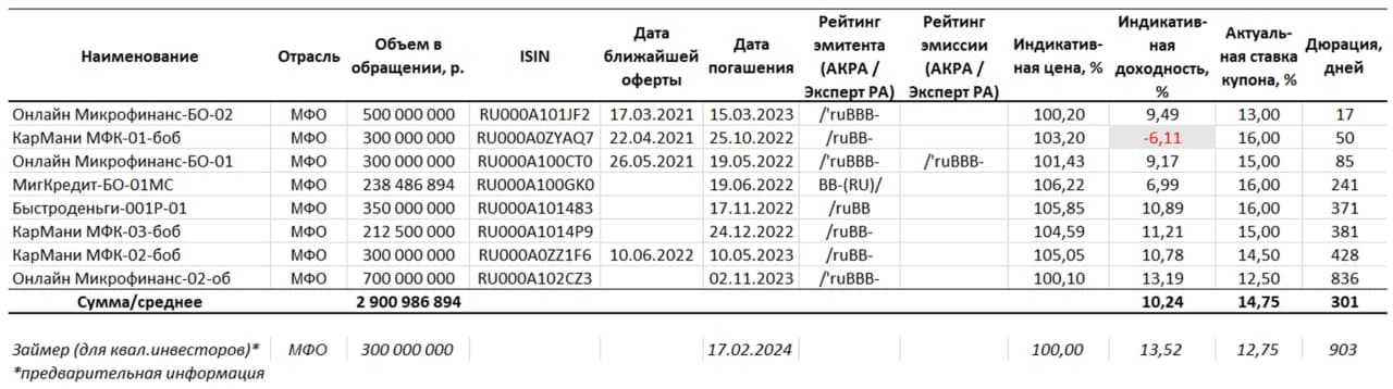 Карта рынка облигаций российских МФО