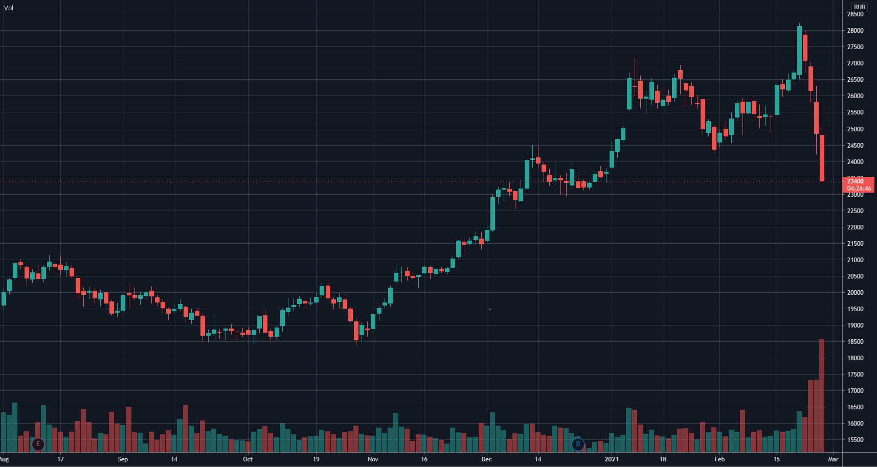 Цены на палладий, никель, платину, медь, кобальт, которые являются основными экспортными товарами компании, находятся на своих максимумах за 5 лет. Тем не менее, акции ПАО «Норникель» снижаются около 17% от своих максимальных отметок.