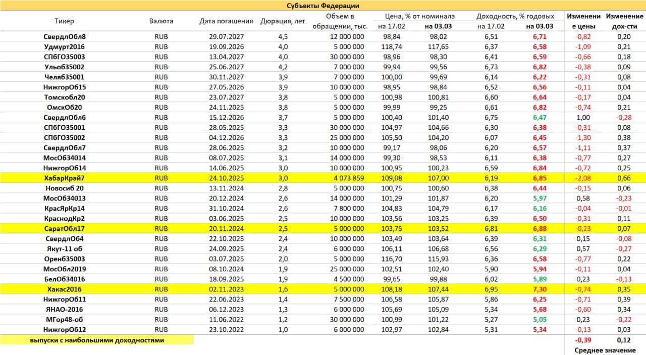 Доходности облигаций субъектов федерации следуют за ОФЗ, давая премию за формальное кредитное качество и сдержанную ликвидность. Ожидать быстрых апсайдов при покупке этого класса бумаг – это, наверно, не сейчас. Поэтому интереснее то, что доходнее. Выбора в этом году стало чуть больше, причем и на коротких сроках до погашения. Возможность обыграть инфляцию (на ее нынешних 5-5,5%) дают уже 2-3-летние выпуски.