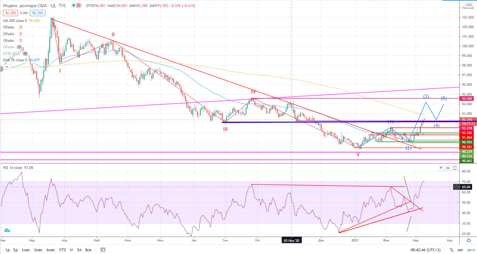 DXY пробил 92,15, сегодня следует особое внимание уделить паре USDRUB ...