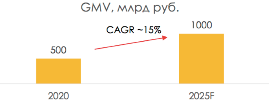 9 февраля компании «M.Видео-Эльдорадо» представила долгосрочную стратегию развития и обновленную див. политику. Планы амбициозные: в будущие 5 лет компания ставит целью увеличить оборот в 2 раза — с 500 млрд до 1 трлн руб., что подразумевает среднегодовой прирост ~ 15% (в 3 раза быстрее рынка). 5% от 1 трлн по плану компании обеспечит модель 3P — продажа товаров партнеров (через собственный маркетплейс), то есть без создания товарных запасов.