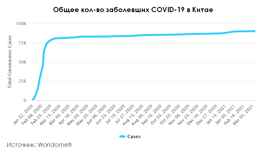 В начале 2020 года COVID-19 и его экономические последствия в основном рассматривались как проблемы, затрагивающие только Китай. Теперь Китай стал одной из немногих стран, успешно сдержавших распространение вируса, и единственной экономикой, которая показала рост ВВП к концу 2020 года. Количество заболевших с коронавирусом в Китае почти не растёт:
