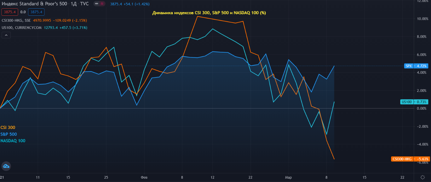 Благодаря этому китайский индекс с начала года вырос на 10%, но после таргетирования ликвидности снизился с максимумов более чем на 15%. В то же время индекс NASDAQ 100 снизился на 7% с максимального уровня из-за роста доходности 10-летних облигаций: