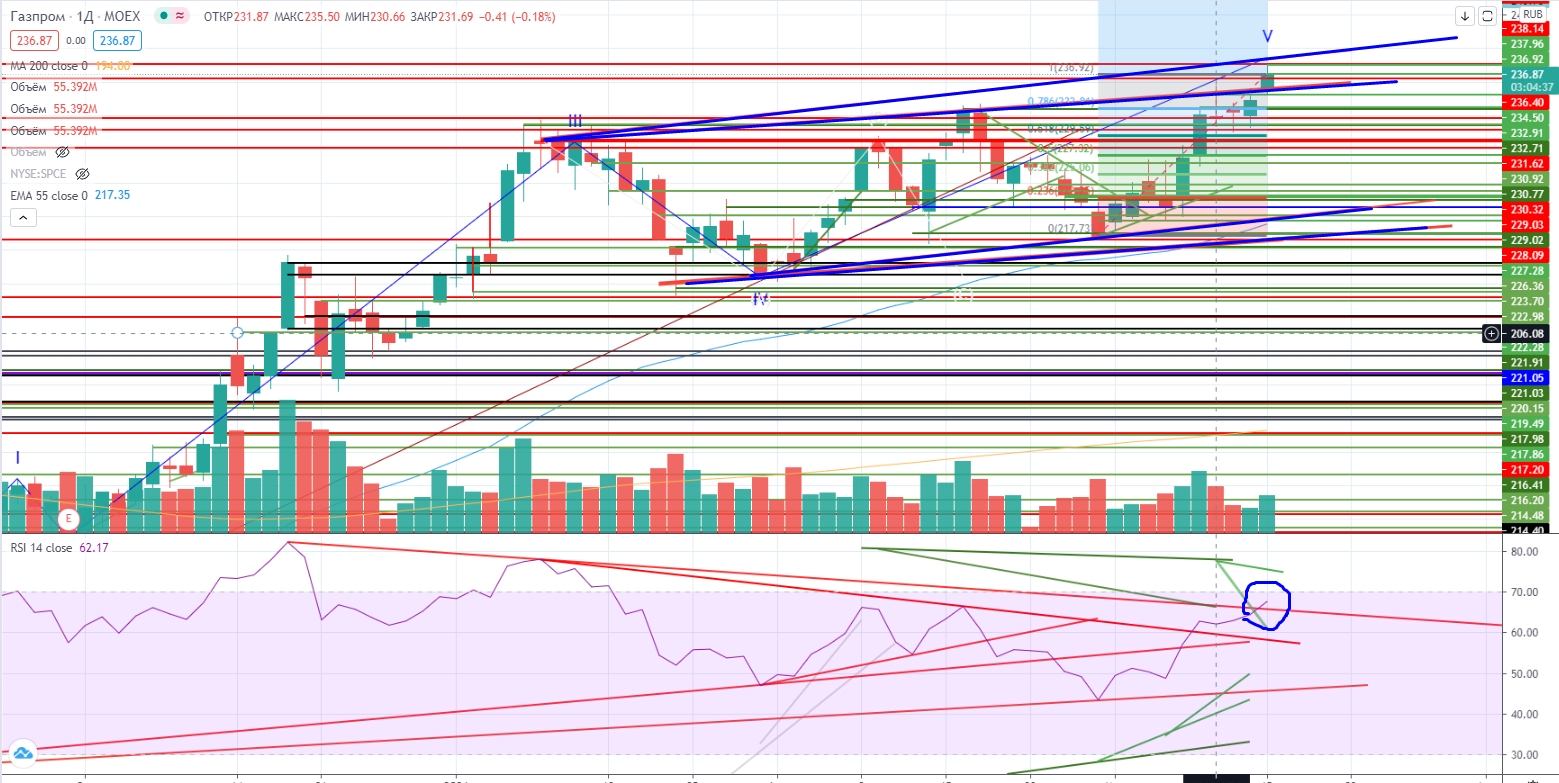 В Газпроме также пробит и ценовой уровень и RSI прошел свой дивергентный тренд.