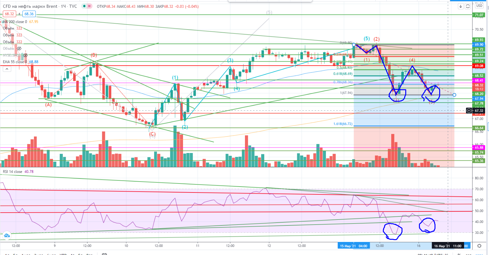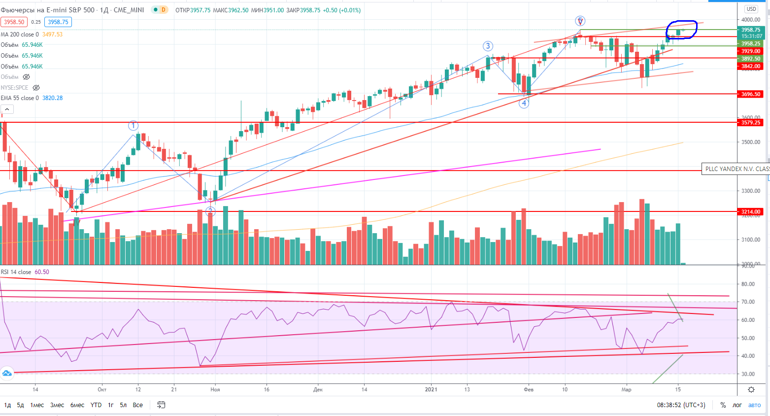 Надо признать, что и индексообразующие бумаги все-же прошли свои локальные хаи и RSI «накернил» свои дивергентные тренды. Но на часах явные дивергенции (https://www.finam.ru/analysis/marketnews/v-nefti-est-vse-shansy-na-korrekciyu-20210315-09500/).