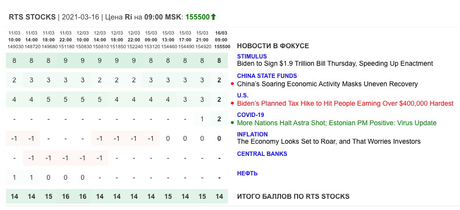 Обзор активов согласно собственной системе оценки новостного фона, собранной в “Индексы рыночных настроений” по каждому активу, которые меняются каждые 4 часа.