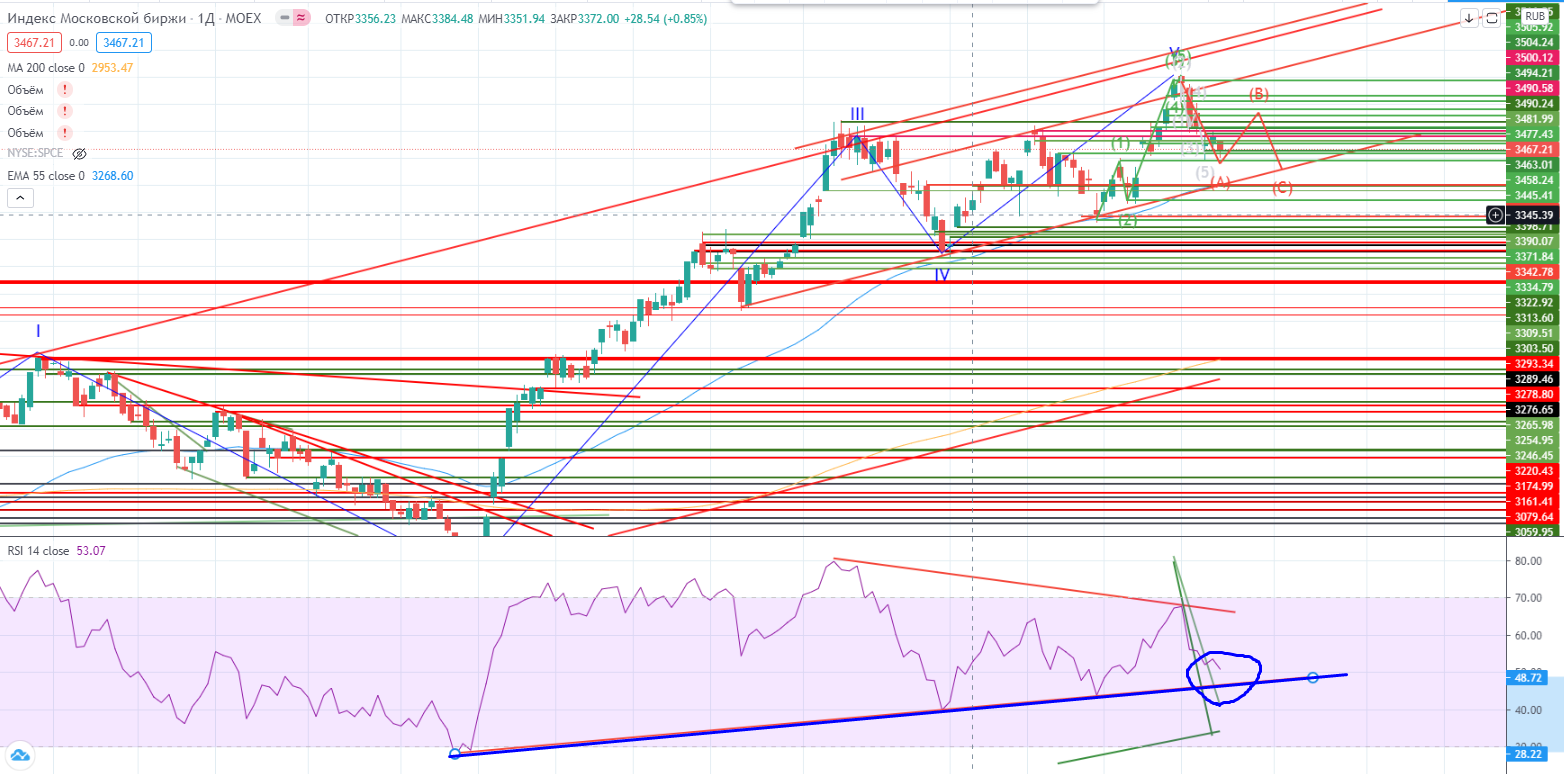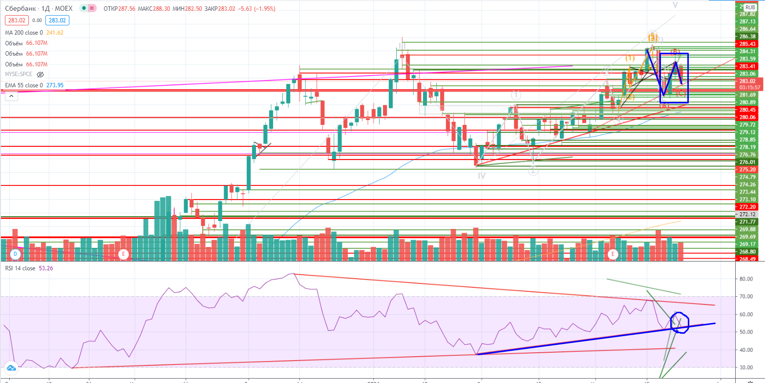 В Газпроме в очередной раз щупали тренд в районе 221+- (https://www.finam.ru/analysis/marketnews/poka-osnovnoe-dvizhenie-na-rynke-vniz-20210323-09400/ ), но так и не прошли. Ситуация мега запутанная, в принципе даже лучше в моменте делать спрэд от покупки с ним, но слишком токсичный актив, в любой момент может сложится!!! Спекулятивно лонг возможен в ожидании волны В, но со стопами ниже тренда…