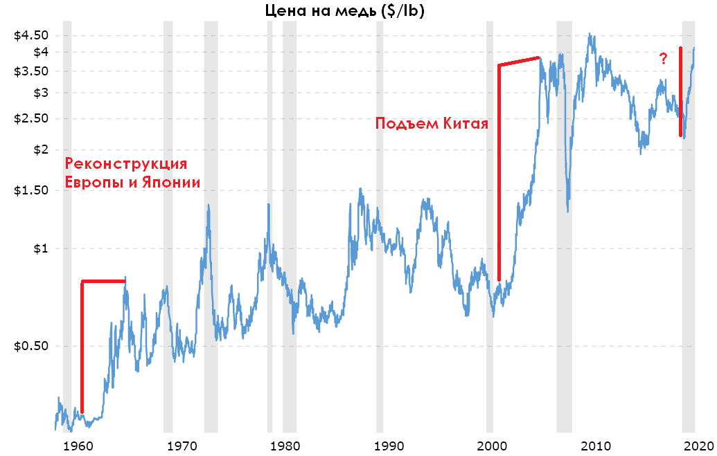 Текущее ралли в цене металла напоминает аналитикам 1960-е годы, когда Европа и Япония восстанавливались после Второй мировой войны (период индустриализации), и 2000-е, когда начался резкий рост китайской экономики:
