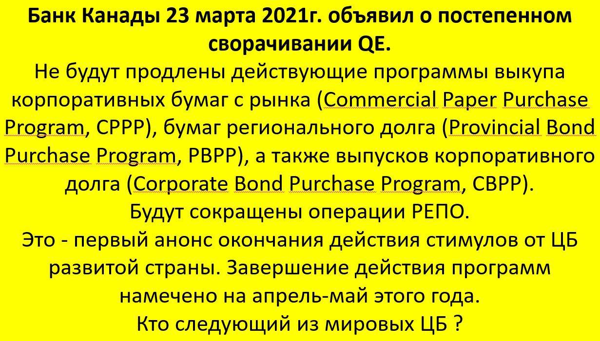 Из развитых стран большой семерки, Канада первой объявила о сворачивании QE.