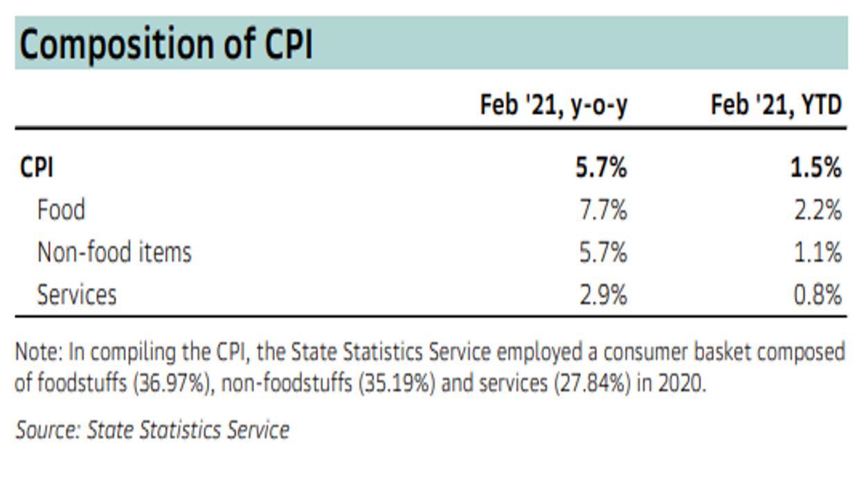 Составляющие CPI РФ (индекс потребительской инфляции).