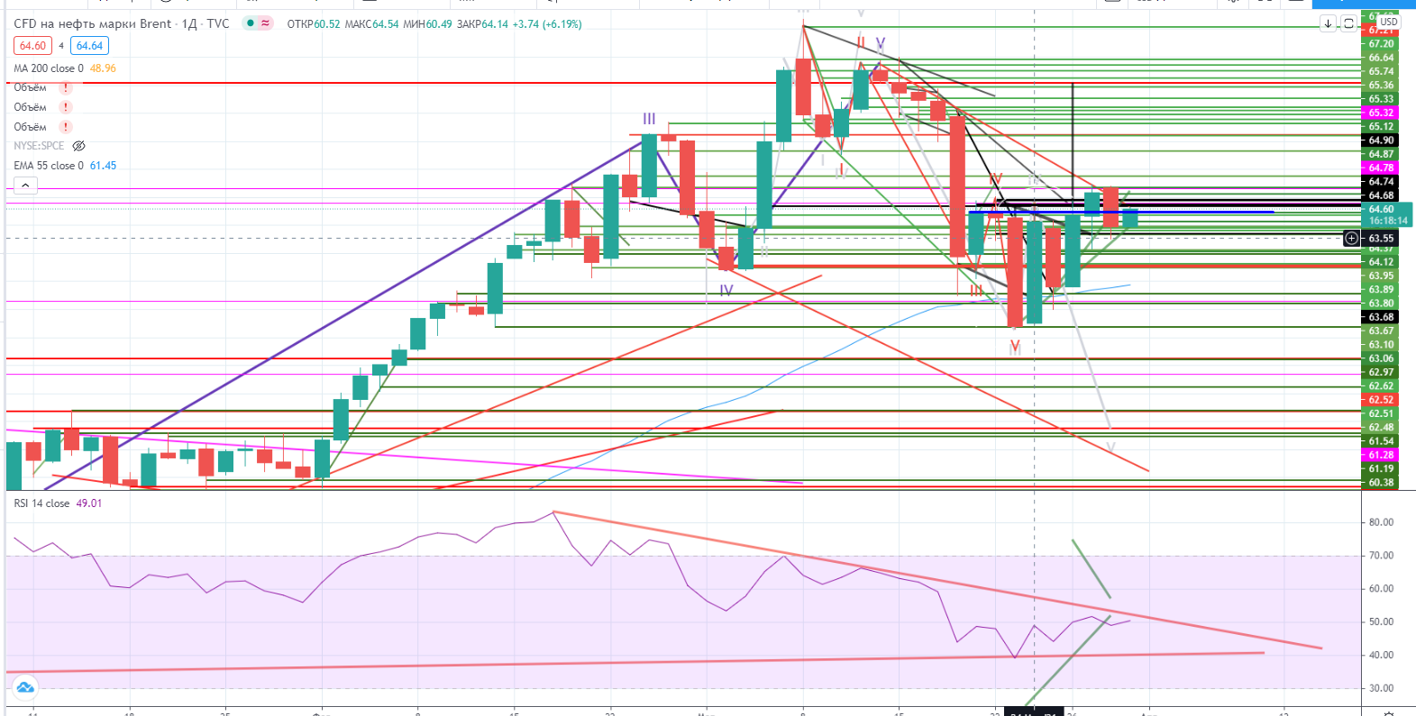 Нефть торгуется импульсами вокруг дневного уровня $64,51, ситуация неопределенная, RSI на дневках в районе 50, так что пила, ждем драйвера 1 апреля (встреча ОПЕК+). Причем этот драйвер может иметь очень серьезное значение ( https://www.finam.ru/analysis/marketnews/neft-sdelala-popytku-sdut-puzyr-20210329-09450/) .