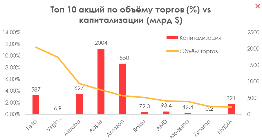 Из частных компаний лучше всех смотрится DISH, так как она дешевая по мультипликаторам относительно широкого рынка телекоммуникаций и недооценена по мнению инвестиционных домов. Сектор частной электроники достаточно нагретый, и в нём уже почти нет потенциала роста. Virgin Galactic почти ничего не зарабатывает — это скорее венчурная история и ставка на будущее. Котировки акции в большей степени зависят от успехов/неудач в запусках самой компании и главного конкурента — SpaceX: