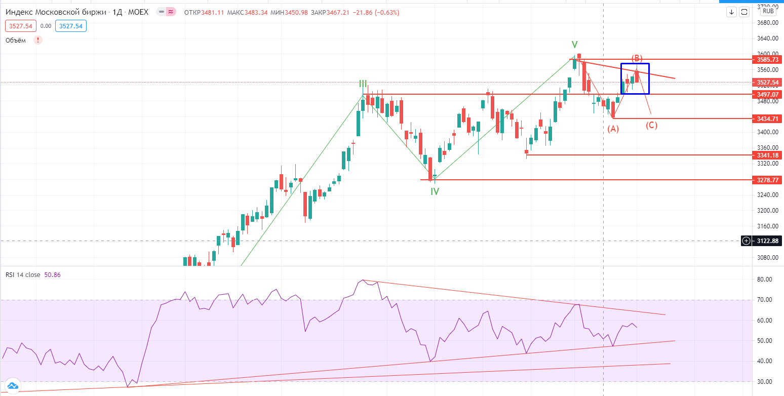 Индекс ММВБ на днях почти однозначно вошел в волну С (о чем я и предупреждал еще утром). Основное подтверждение все же надо ждать завтра. Если падение продолжится, то вероятность похода вниз существенно увеличивается!!!