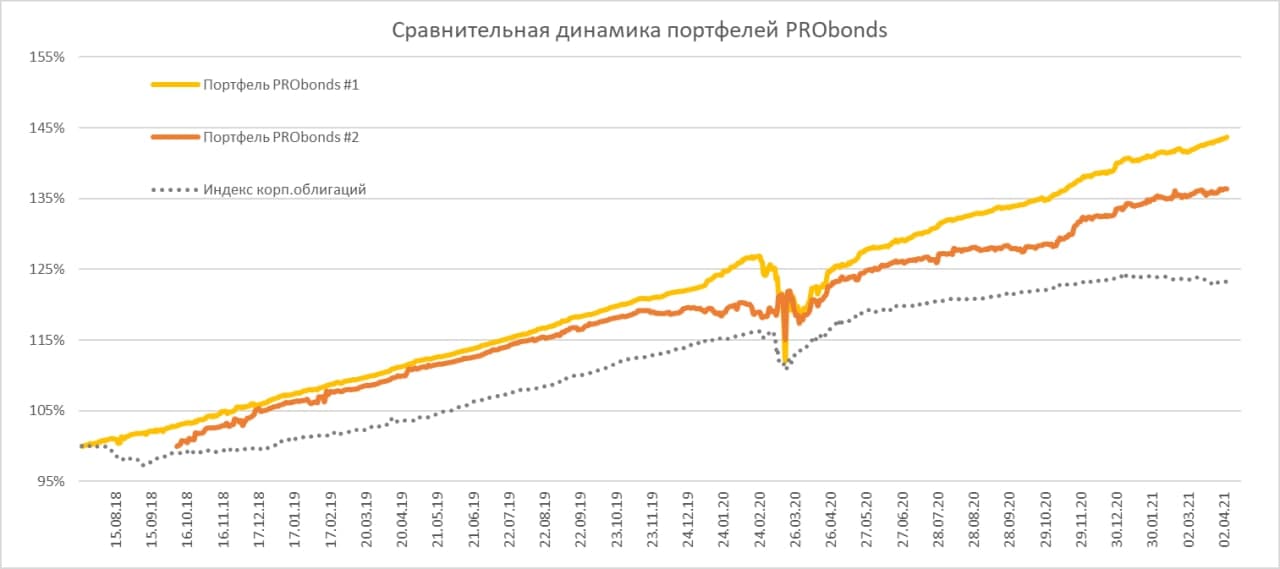 Краткий обзор портфелей PROobnds. Доходность портфеля облигаций превысила 20% с апреля 2020