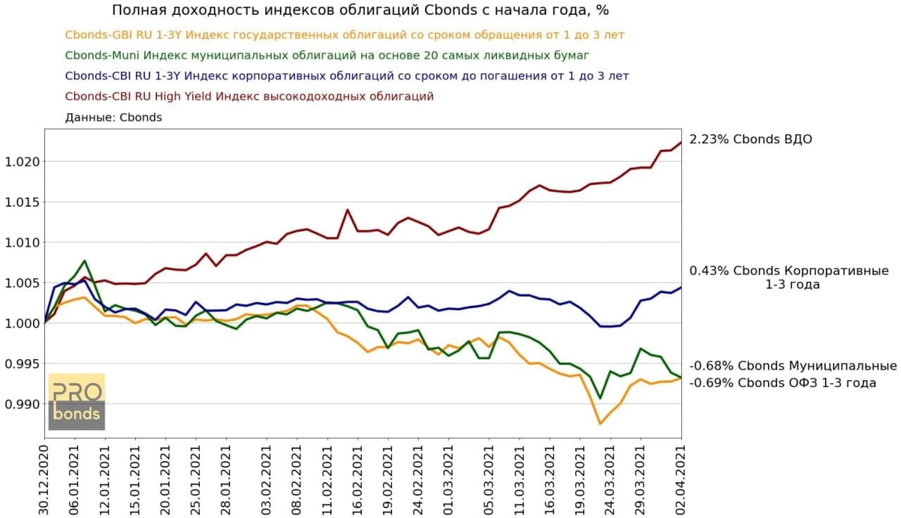 Рост доходности долгосрочных облигаций оказывал давление на индексы RUABITR и RGBITR от Московской биржи. При этом индексы корпоративных (RUCBITR) и муниципальных (RUMBITR) облигаций показали положительные доходности