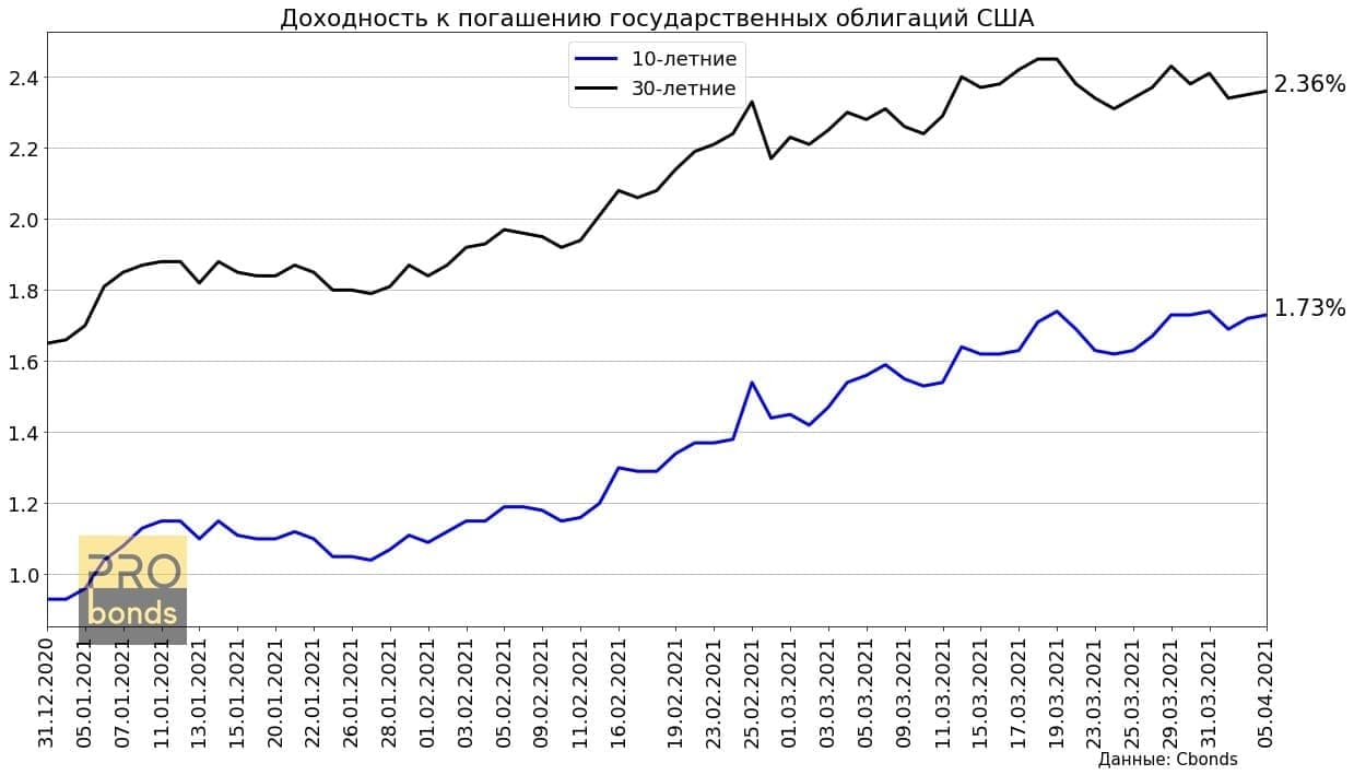 Доходность по 30-ти летним бумагам снизилась на 0.02 п.п. (с начала года + 0.71 п.п.)