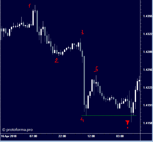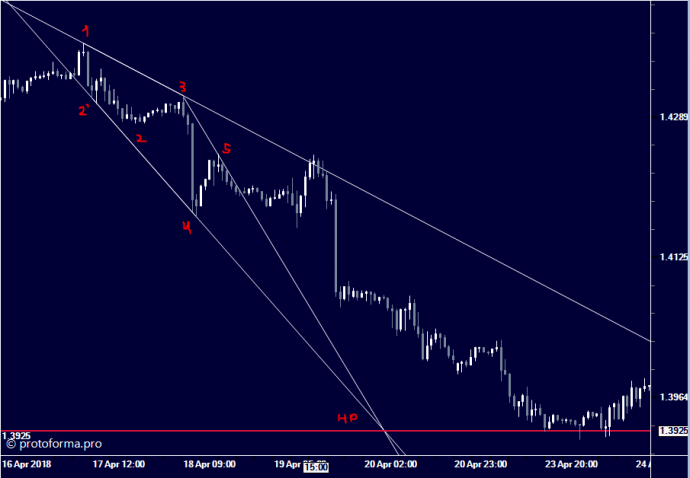 В методе анализа Тактика Адверза особое внимание необходимо обращать на модели от начала тренда. Приведу пример МР (модель расширения) на часах пары GBPUSD: