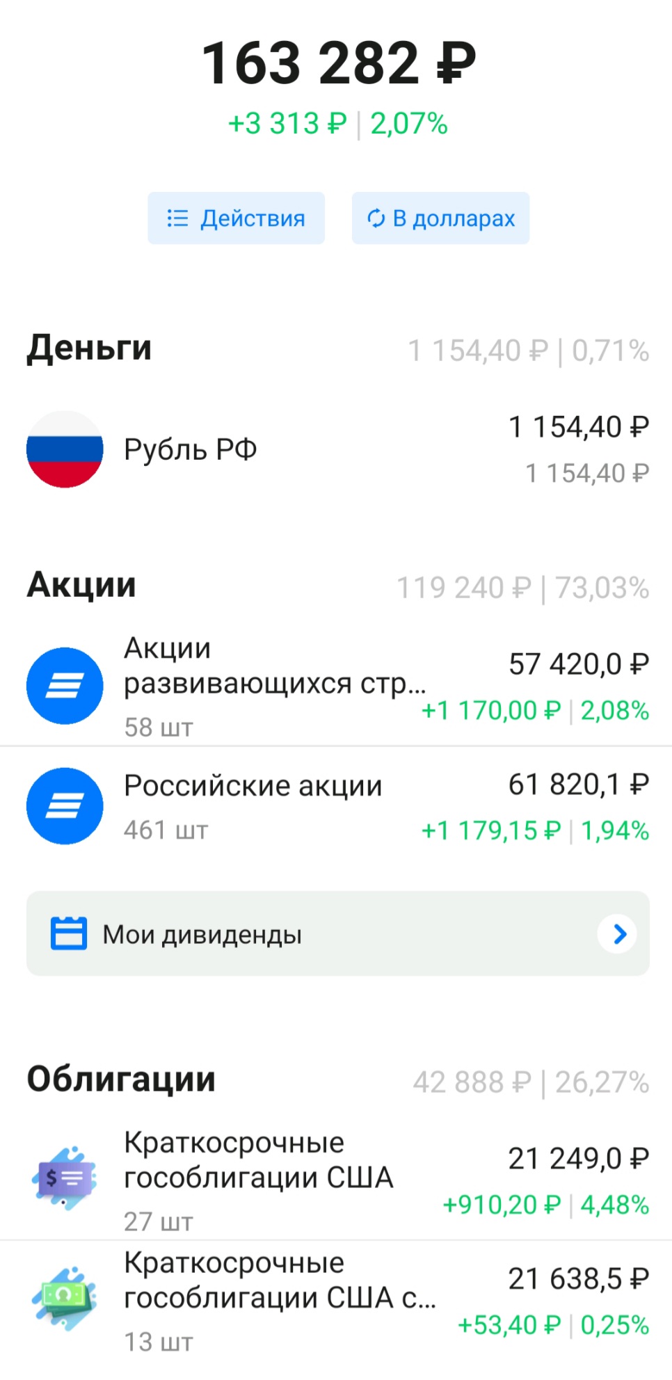 Раздел акций формирую, выбирая из двух БПИФов ВТБ