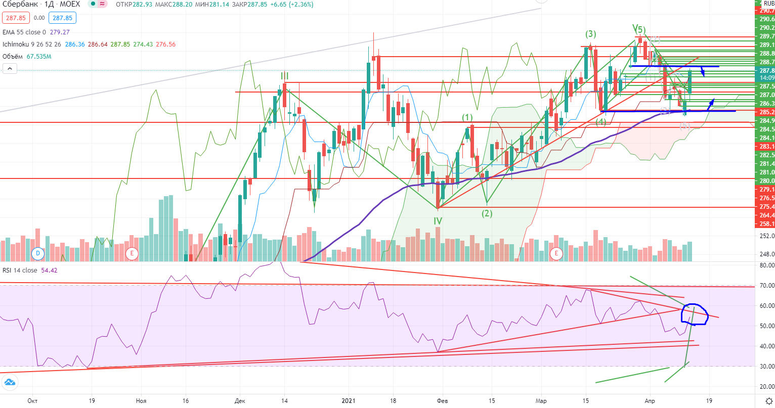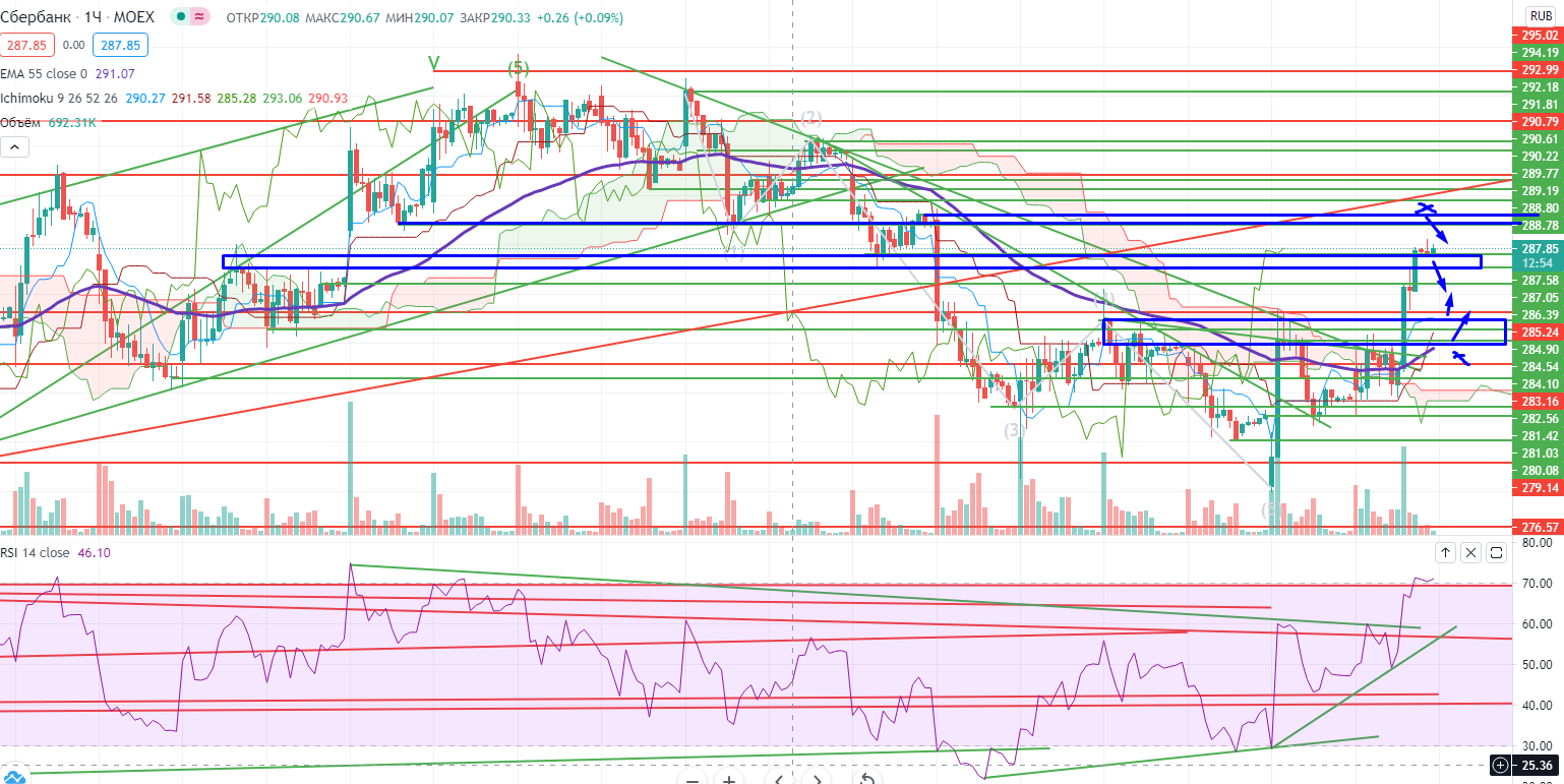 На часах (если конечно можно верить ТА) я рекомендую следующие уровни - Покупка — зона 284,1-284,85 со стопом 283,8-.Продажа — зона 287-287,7, стоп 288,1+ и почти сразу 288,9-289,25, стоп 289,5+
