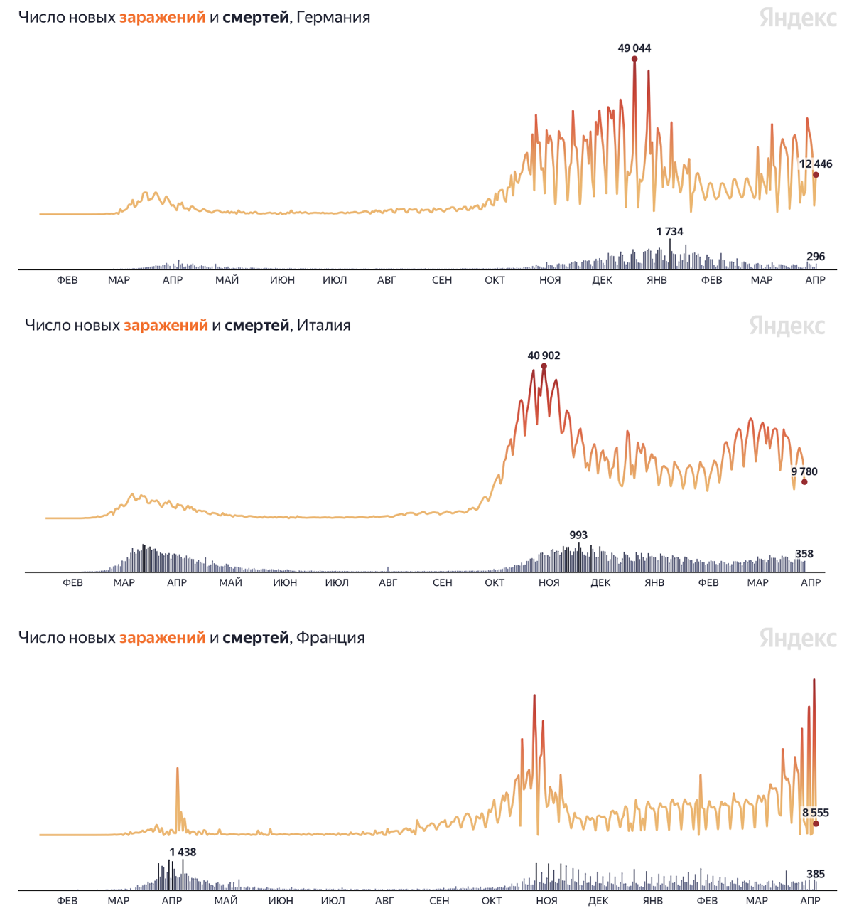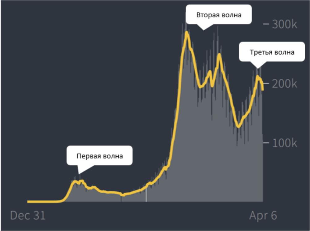 После первой волны коронавируса большинство стран перешло в режим локдауна. Это помогло приостановить первую волну коронавируса. Потом, после постепенного снятия ограничений, в конце 2020 на мир обрушилась вторая волна, на пике которой в Европе было 318,6 тыс. новых заболевших.