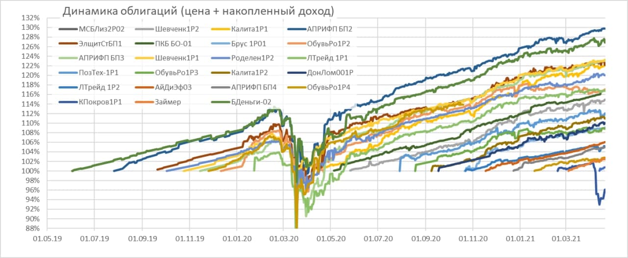 Облигации Концерн Покровский 001P-01 (эмитент ОАО «Агрофирма-племзавод «Победа») постепенно восстанавливаются в цене после прошедших в здании Концерна обысках. С целью стабилизации цен на облигации 16 апреля эмитент раскрыл информацию о досрочном перечислении купона по облигациям в НРД. А вчера менеджмент Концерна (управляющий агробизнесом и руководитель финансового департамента) провел прямой эфир с ответами на вопросы держателей облигаций.