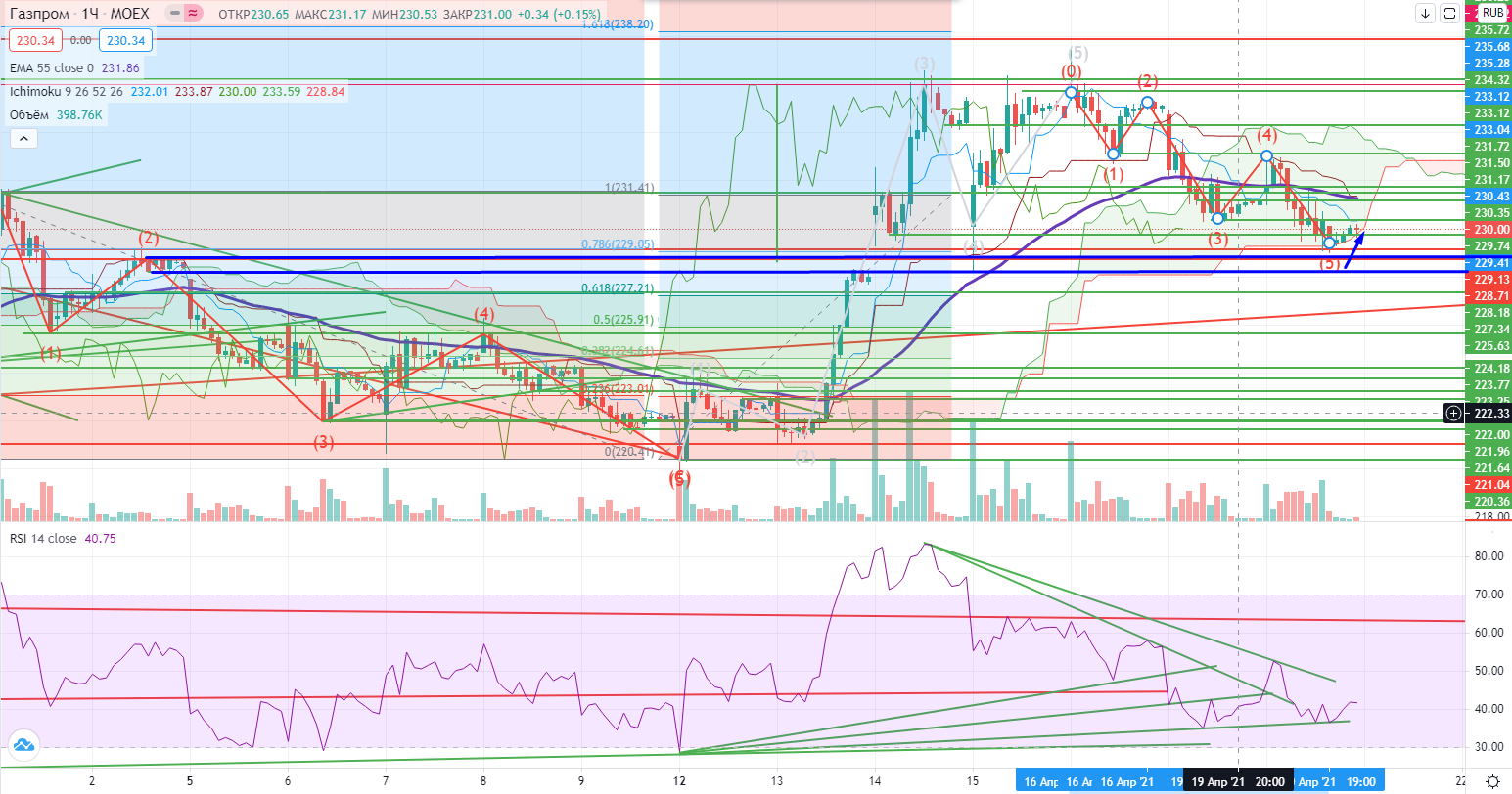 Но как не странно (https://www.finam.ru/analysis/marketnews/doroga-k-70-za-barrel-dlya-nefti-brent-otkryta-20210420-09300/) в Газпроме вчерашние рекомендации остались в силе. «В «Газпроме» на днях нарисована второе подтверждение разворота «Вечерняя звезда» ( хоть фигура и не требует подтверждения), но дневной уровень поддержки находится на 228,75, что почти рядом.В «Газпроме» на часах есть зона для покупки 228,28-228,8 (гэп), можно снова покупать со стопом 228-, что в сочетании с дневным уровнем полностью укладывается в понимание. Это будет на сегодня идея №1.»