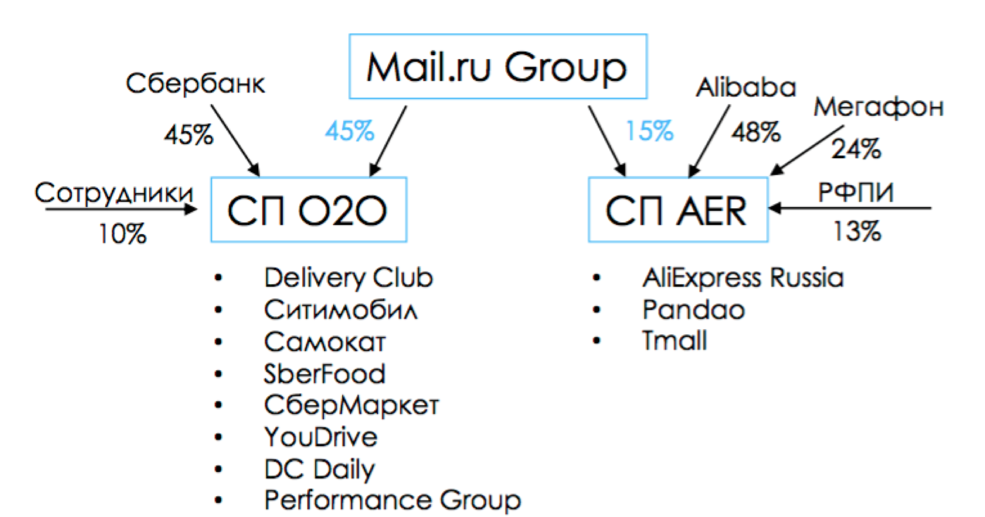 Mail.ru, как и Яндекс, инвестирует в развитие различных сервисов, только делает это не под общим брендом, а под разными через сеть своих активов и СП с партнерами.