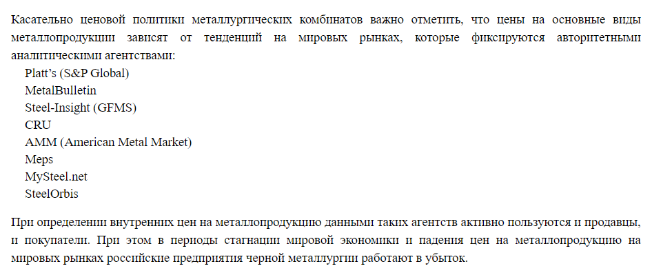 В случае со сталеварами рост цен объясняется мировой конъюнктурой и высокой долей участия российских сталеваров в мировом предложении стали.