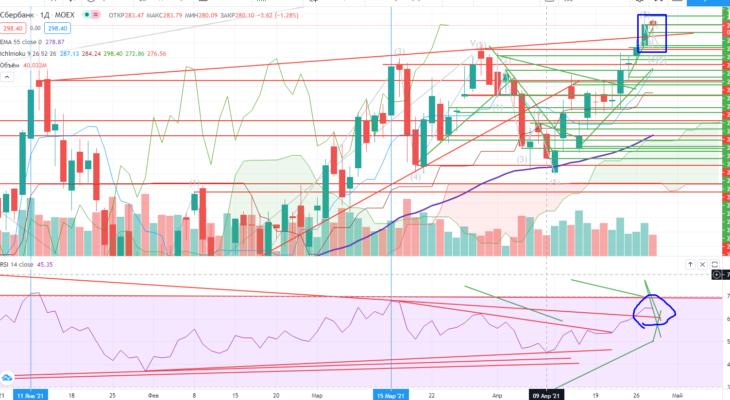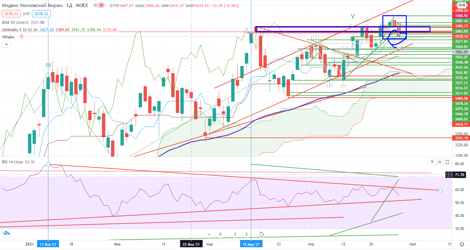 Несколько слов про вчерашний рынок. По большому счету боковик, причем сжимающийся совсем. В ГМКН надо было пробовать на собственном счете теорию, к сожалению, нервы сдали, пришлось закрыться по стопу. Но идея подбора остается (https://www.finam.ru/analysis/marketnews/sberbank-odin-ne-mozhet-tyanut-rynok-20210428-09300/) .