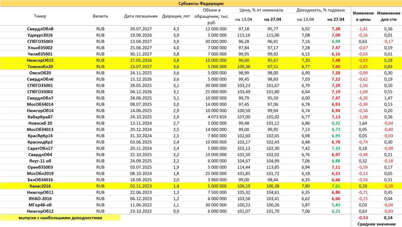 PRObondsмонитор. Субфеды. 7-7,5%+ интересны сами по себе
