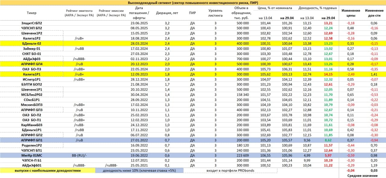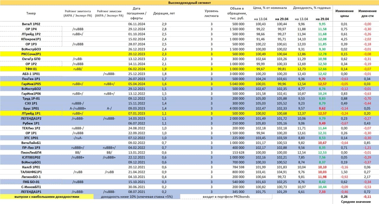 PRObondsмонитор. Высокодоходные облигации