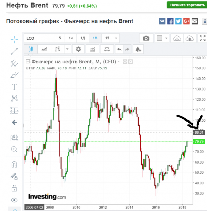 Вот нефть по 80 вам. Сопротивление на 89. Если за сопротивление считать лои 2012 года. То оно проходит на отметке 89$. Если за сопротивление нефть 17.05.18 17:17 4920 Veresk +3 Комментарии Нет комментариев. Ваш будет первым! Войдите или зарегистрируйтесь чтобы добавлять комментарии