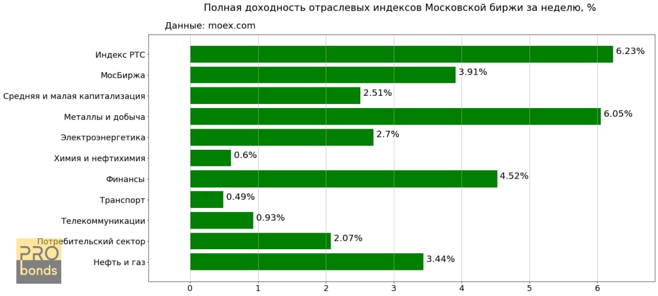 На текущей неделе все отраслевые индексы Московской биржи показали положительную доходность