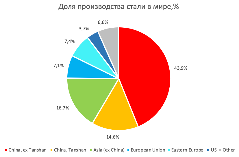 В округе Таншань насчитывается 30 заводов, которые производят 20–25% стали в Китае. На фоне экологических проблем правительство Китая решило ввести производственные ограничения, в ходе которых 7 заводов сократят производство вдвое до 30 июня и на 30% во второй половине 2021 года, еще 16 заводов могут попасть под сокращение производства на 30% до декабря 2021 года. Если проект плана по экологии будет принят, то за год производство чугуна в регионе может упасть на 22,2 млн тонны, что сократит спрос на железную руду более чем на 35 млн тонн. Китайцы производят больше половины стали в мире (~58,5%), поэтому такое сокращение производства в Китае – это позитив для цен на сталь и негатив для цен на железную руду.