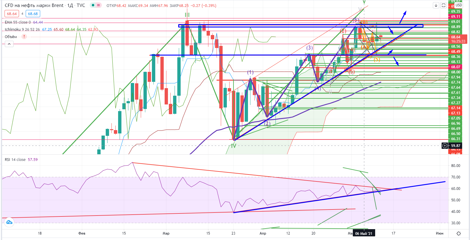 А вот в нефти вчера разгорелась целая баталия. Нефть на днях была снова на грани, был тест горизонтального уровня 67,1 и тренда в районе 67,5, волатильность в нефти «за гранью»,± $1+ за час в обе стороны…Пока ШИРОЧАЙШИЙ КАНАЛ 67,1-69,6, внутри него можно конечно торговать, но при приближении к уровням волатильность сразу увеличивается, стопы срываются на раз-два… Поэтому в этой войне надо стоять в стороне и входить в сторону пробоя НА РЕТЕСТЕ!!!