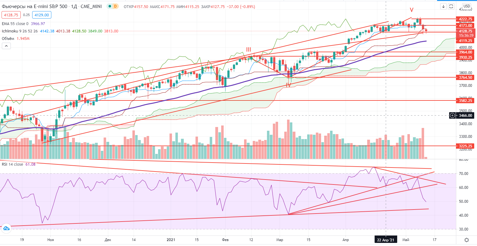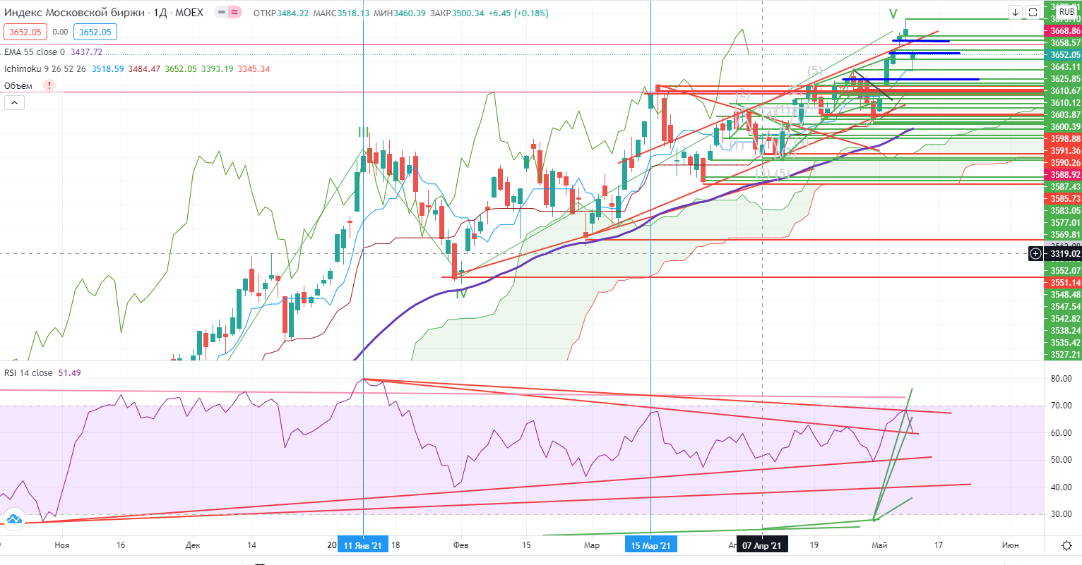 Но если отвлечься от причины гэпа (хотя как это можно), то видим незакрытый гэп сверху (3678) и зоной поддержки в районе 3610, вот в этом диапазоне мы и будем некоторое время торговать...