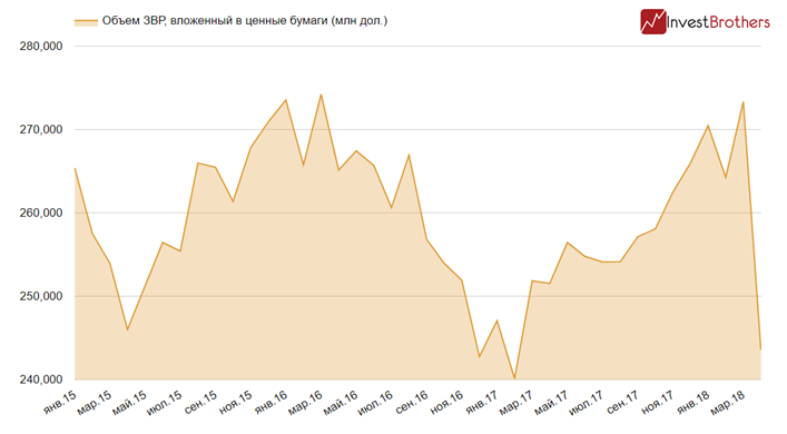 Всего за месяц ЦБ вывел из облигаций 29,8 млрд долларов. Так агрессивно он действовал лишь в кризисные моменты. Отчасти санкции против "Русала” можно к таковым отнести, но деньги остались на зарубежных депозитах иностранных банков, а не пришли в страну. Кроме того, раньше с продажей ценных бумаг сокращались и объемы ЗВР, а в этот раз они выросли.
