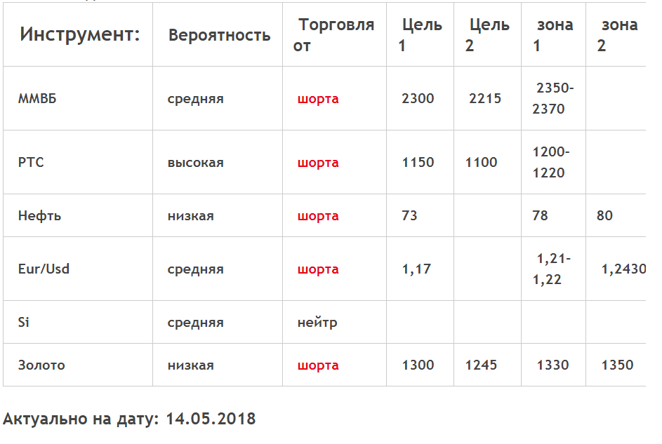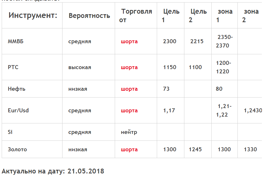 Из моих целевых отметок с начала прошлой недели своих целей достигли евро и золото. наш рынок начал откат точно от указанных ещё до открытия в поенедельник уровней, которые были достигнуты в понедельник же. Вот так табличка выглядела на состояние до торгов прошлого понедельника: