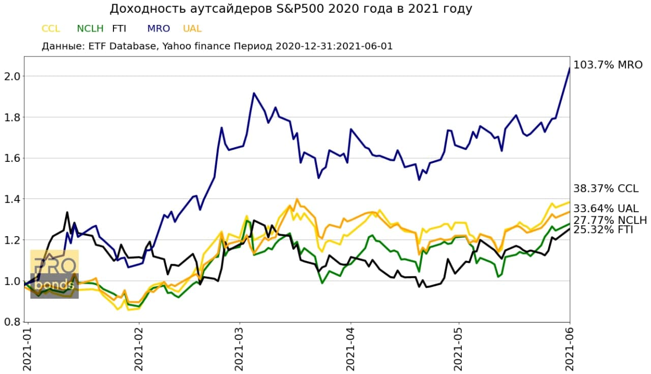 Доходность аутсайдеров S&P500 2020 года в текущем году