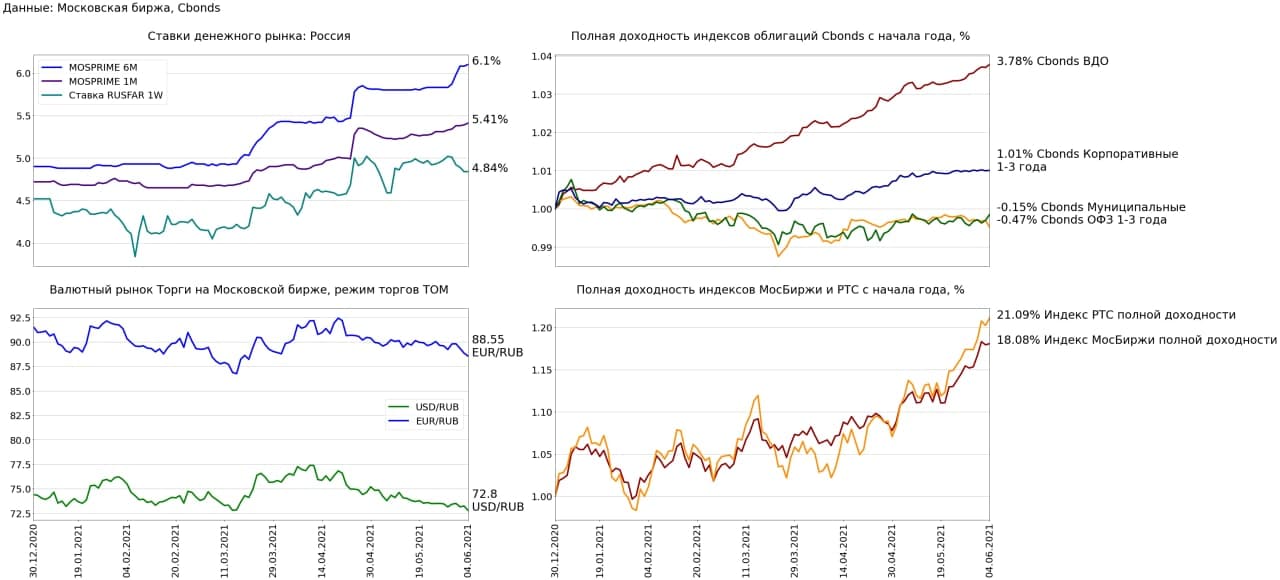 • Ведущий индикатор денежного рынка: 6-месячная ставка MOSPRIME выросла на 0.02 п.п. до 6.1% (+0.27 п.п. н/н, +1.2 п.п. с начала года)