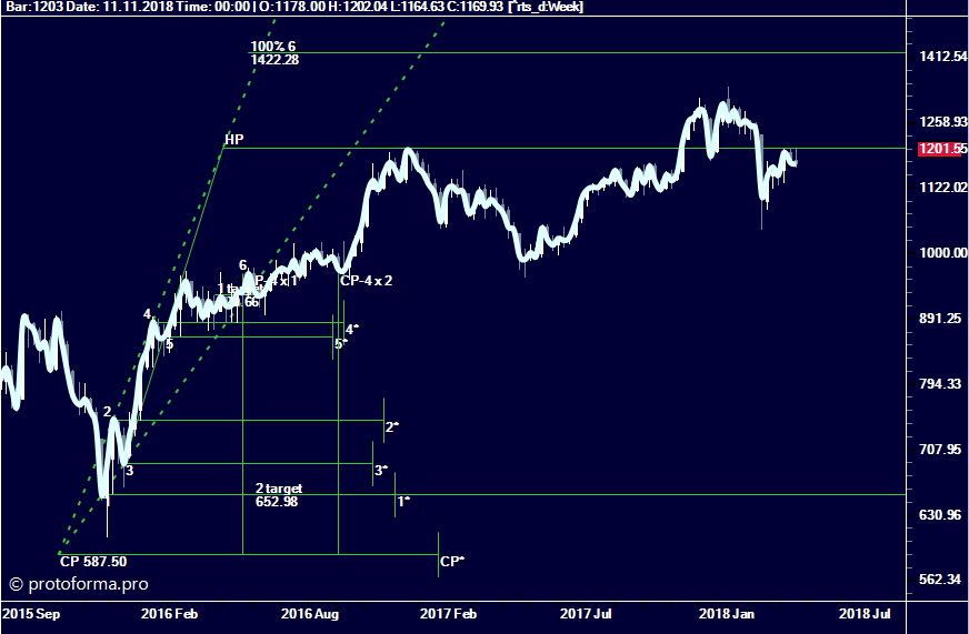 Часто возникают вопросы почему не доходим до расчётных уровней. В методе анализа Тактика Адверза всегда необходимо в таких случаях смотреть на старший План. На недельном графике уровень НР 1201 МР (модели расширения) от начала тренда по ценам закрытия, выступает в дальнейшем уровнем сопротивления/поддержки, в терминологии ТА, — След :