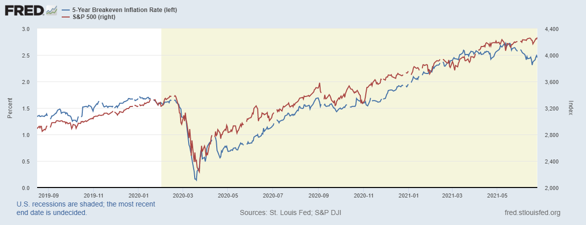 Такая ситуация продолжает поддерживать рефялционные настроения и ожидаемая инфляция потихоньку восстанавливается, поддерживая фондовый рынок – это нанесено на превью.