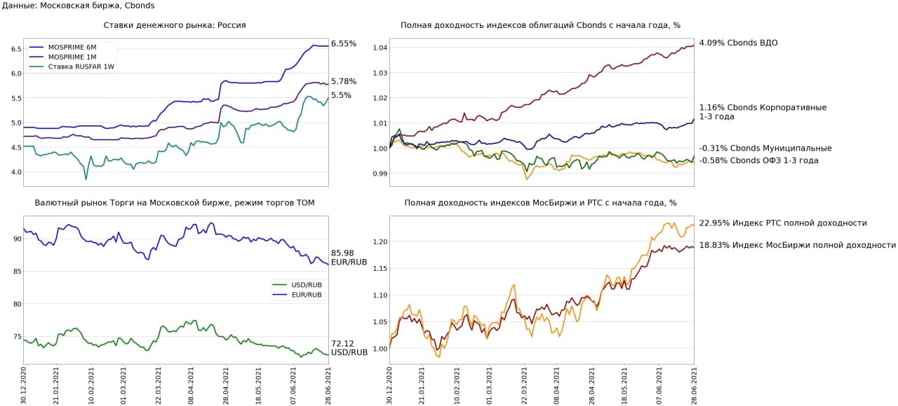 • Ведущий индикатор денежного рынка: 6-месячная ставка MOSPRIME не изменилась, значение 6.55% (-0.01 п.п. н/н, +1.65 п.п. с начала года)