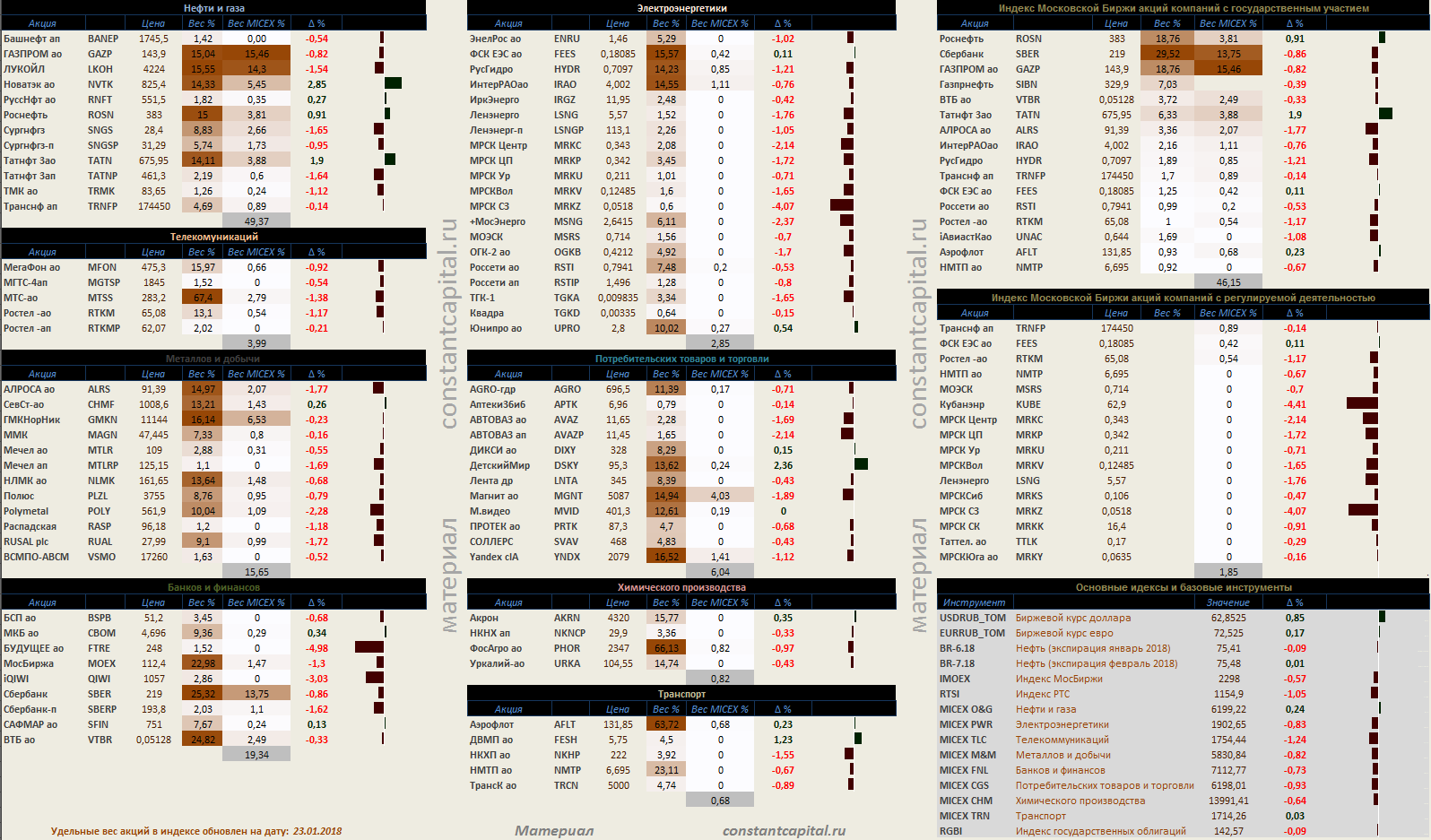 Динамика акций за текущий день, в структуре отраслевых индексов Динамика акций за текущий день, в структуре отраслевых индексов, и индексов государственного сектора. полноформатная картинка — http://constantcapital.ru/?p=13239 акции, индексы, рынки 30.05.18 01:54 4007 constant.capital. +1 Комментарии Нет комментариев. Ваш будет первым! Войдите или зарегистрируйтесь чтобы добавлять комментарии