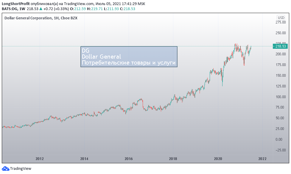 осуществляющие продажи и через интернет, сумели в обход известного итальянского модного дома Dolce and Gabbana зарегистрировать аббревиатуру DG как онлайн адрес своей компании, чем существенно повысили её рейтинг и узнаваемость. Капитализация составляет 51.6 млрд долларов, P/E 20. Экономят все, а когда кризис, экономят вдвойне. При падении акции от 10 процентов смело покупать.
