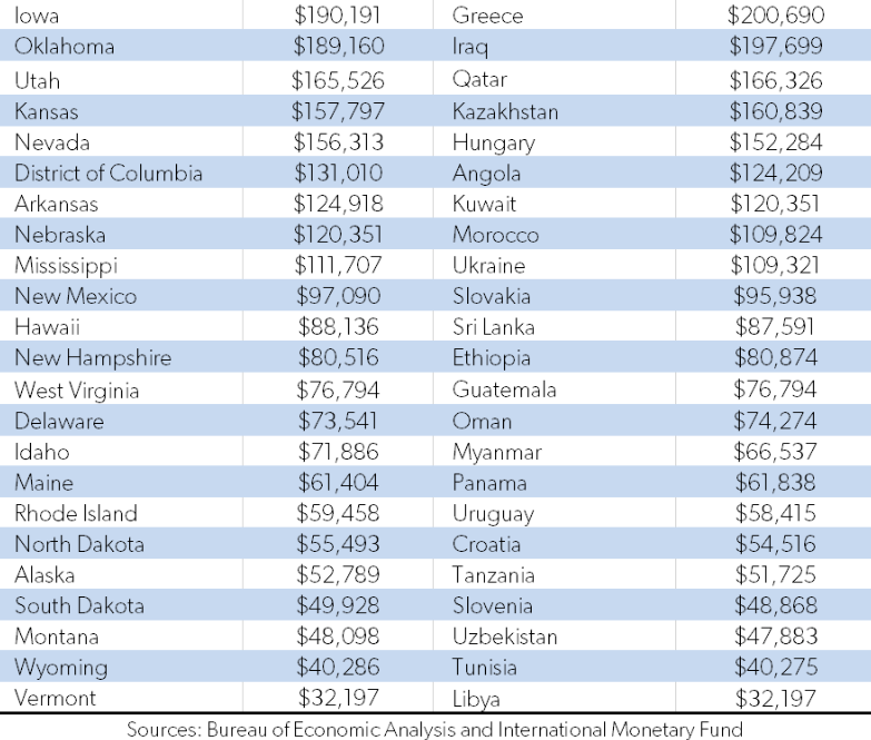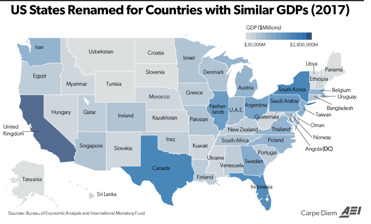 Сравнение экономик Отдельных штатов США и Стран мира.