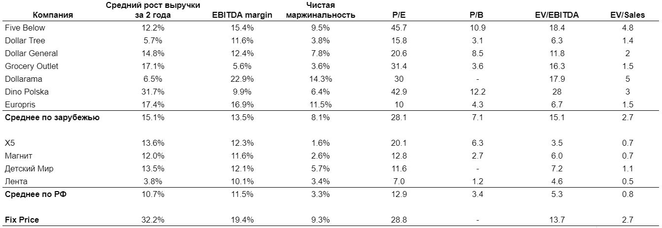 При этом важно отметить, что Fix Price выделяется куда более привлекательными темпами роста выручки, рентабельностью по EBITDA и прибыли, что и создаёт премиум в оценке Fix Price, так что оценка бизнеса высокая, но вероятно заслуженная.