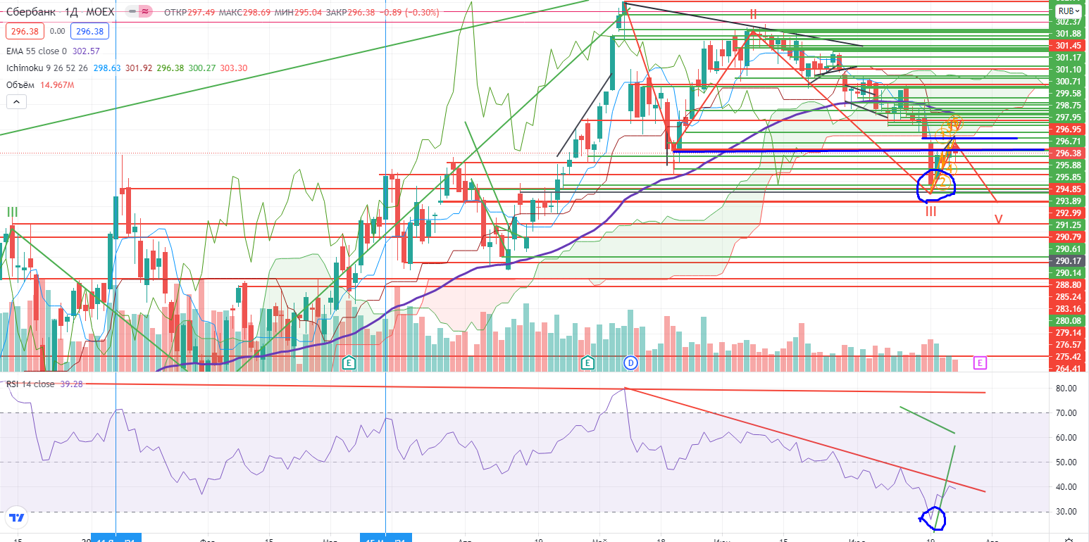 Сбер -ниже горизонтального уровня сопротивления 296,72 и ниже гэпа 298,85, однозначный шорт!