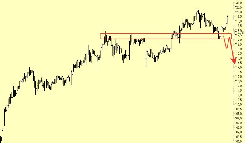 Интересный момент показывает акция Сургута, что странно так это объём перед закрытием, обычно такие объёмы на хвостах возникают на каких ложных пробоях, а тут простой тест уровня, возможно тому виной новые правила Мосбиржи о расчете цен индекса